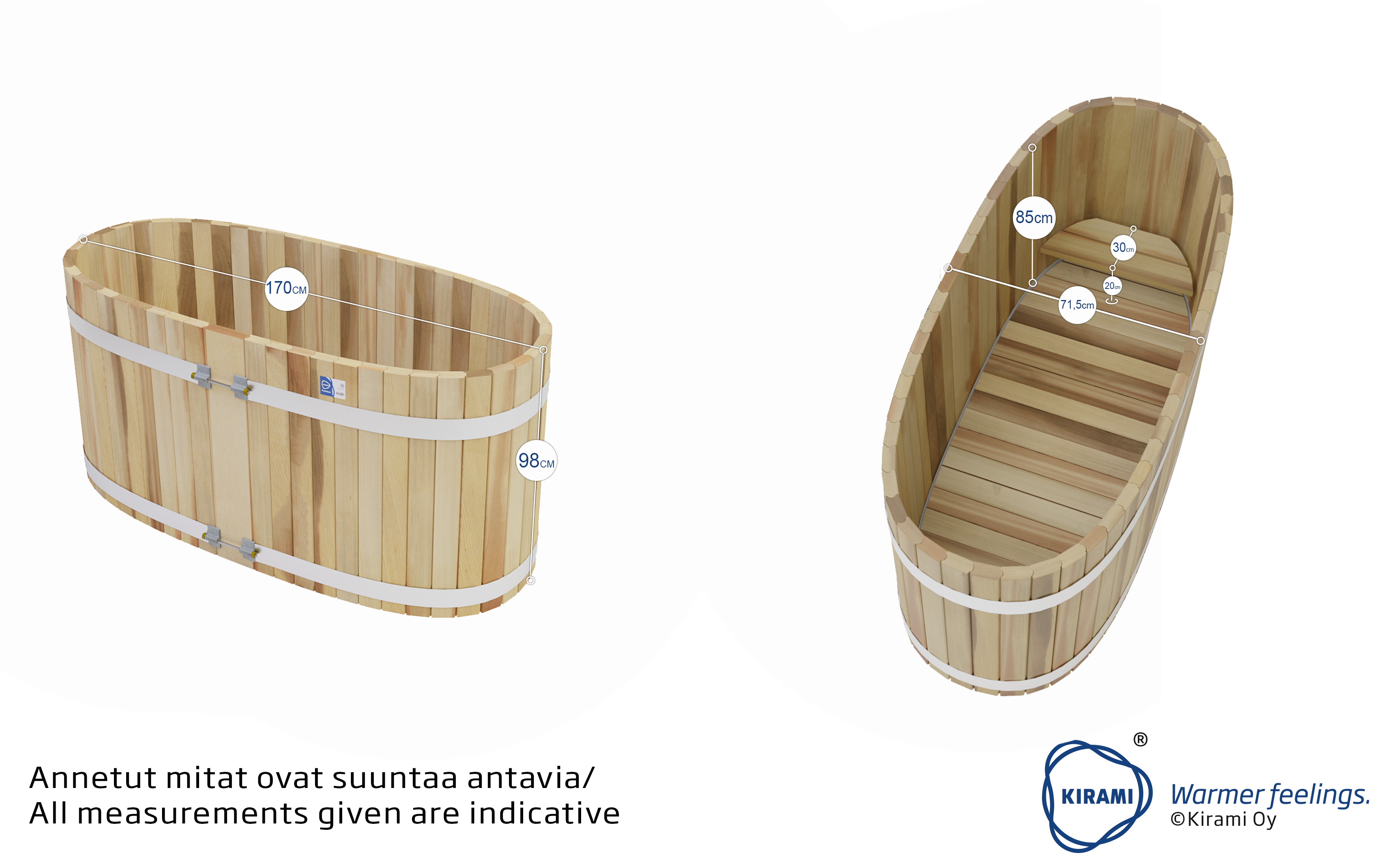 Le diamètre du bassin est de 170 cm, le volume d'eau est de 760 litres et il est conçu pour 1-2 personnes. Le poids à sec du bassin est de 90 kg.