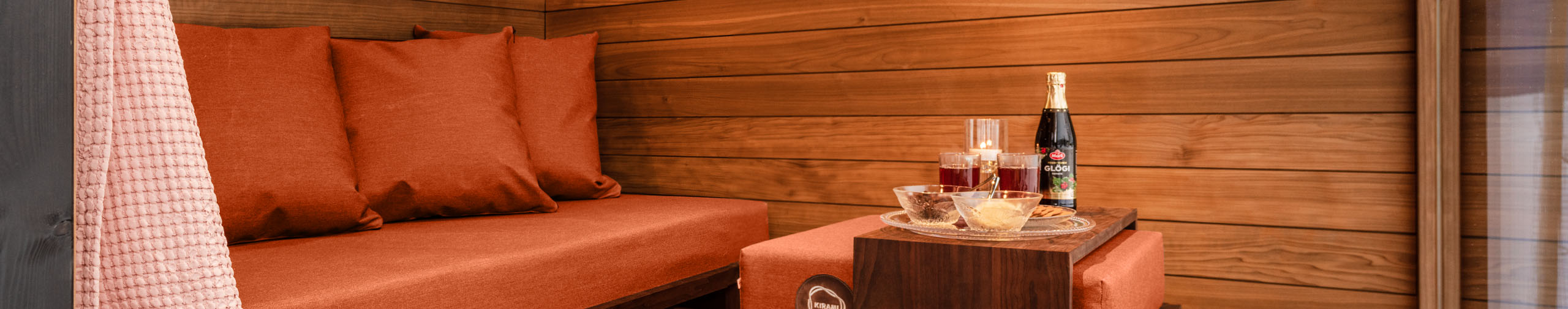 Les matériaux de surface de Lounge XL sont les mêmes que ceux des autres modules Misty : l'enveloppe extérieure du Lounge est un élégant panneau en bois résineux traité thermiquement (* épicéa) . Le bois thermique traité en surface élégant et noir profond est durable et la couleur protège le bois de la saleté et des rayons UV. Ce revêtement extérieur facile d'entretien complète l'aspect moderne et élégant du salon. L’intérieur du lounge est en bois de feuillus thermo-chauffé (* tremble). Le sol, les murs et le plafond du salon d’hiver sont isolés. De ce fait, l’espace restera confortable tout au long de l’année.